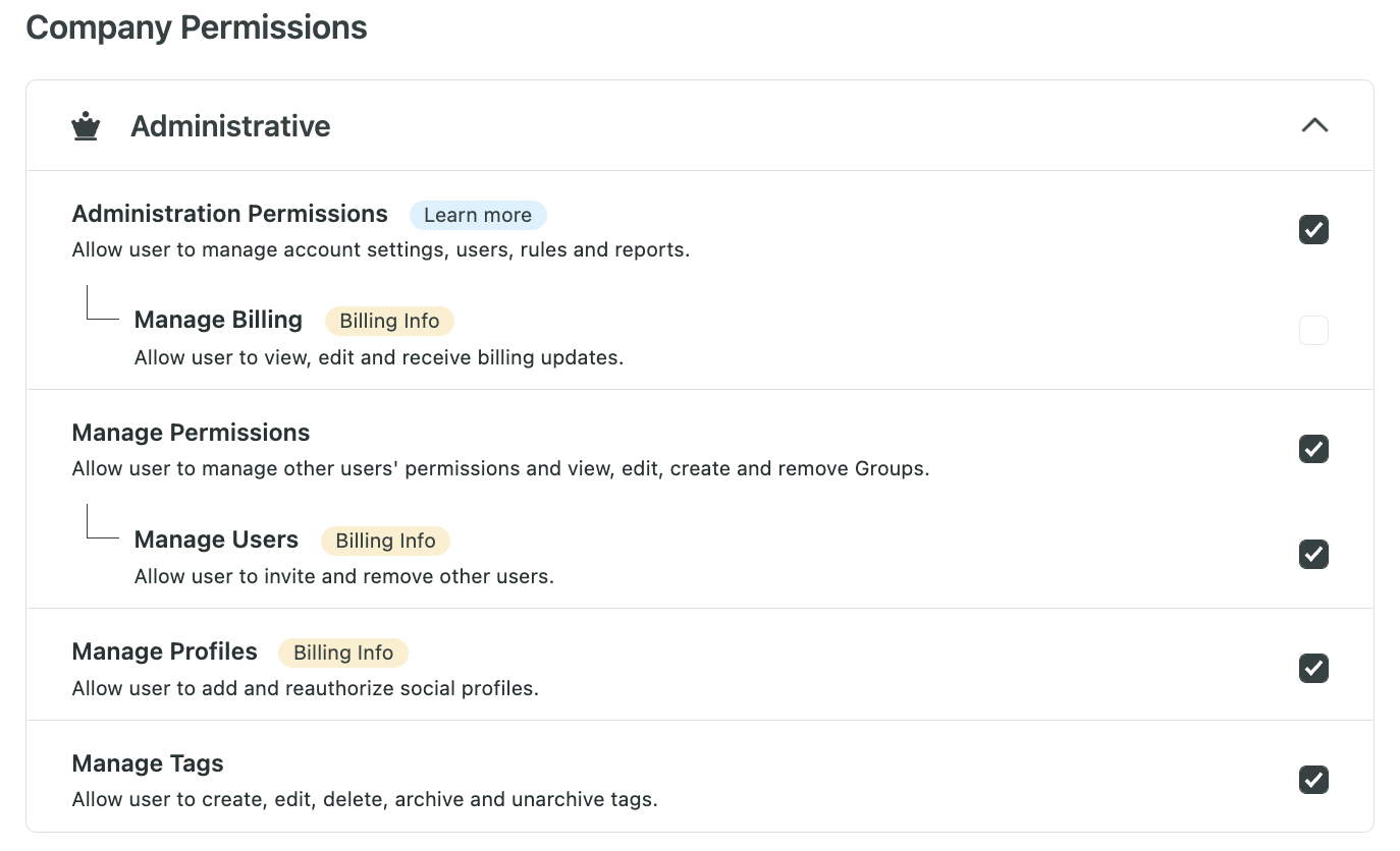 Start by setting clear user permissions. Your social media management platform should enable you to grant specific access levels based on each team member’s responsibilities. For example, in Sprout Social, you can set user permissions at the company and feature level. This ensures that team members have access to the tools they need—and nothing they don’t.